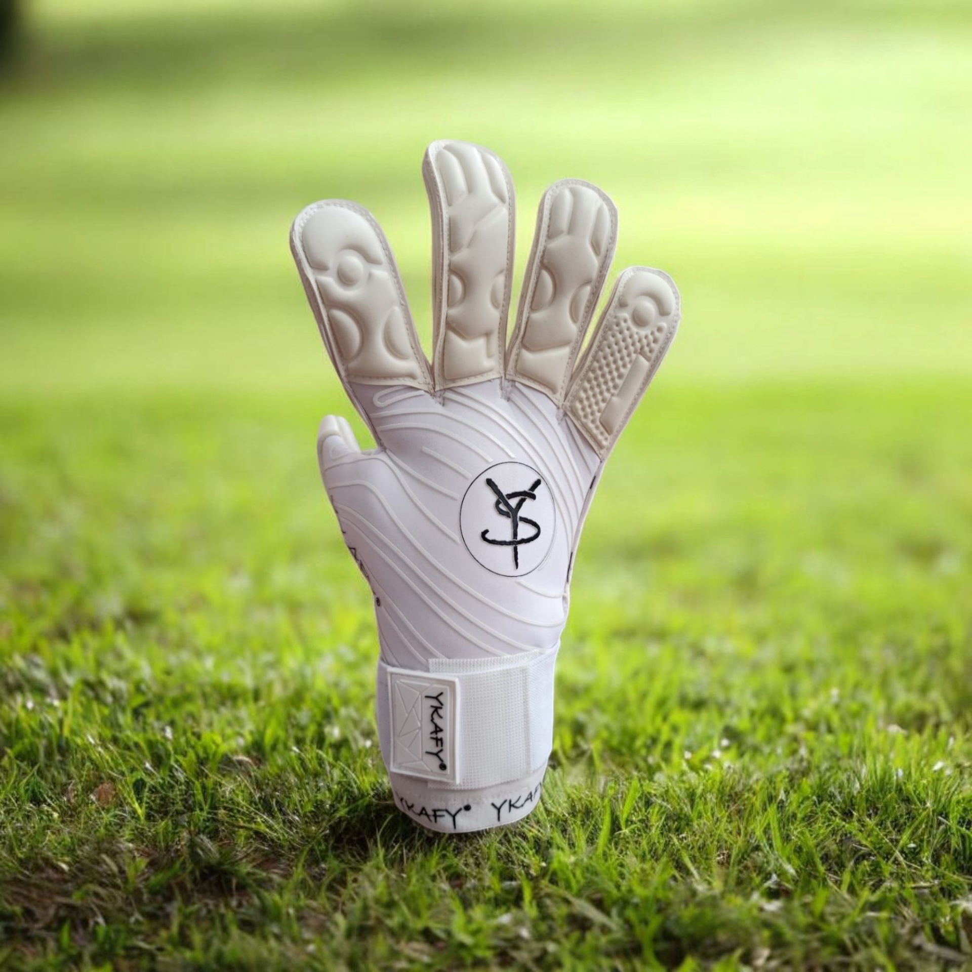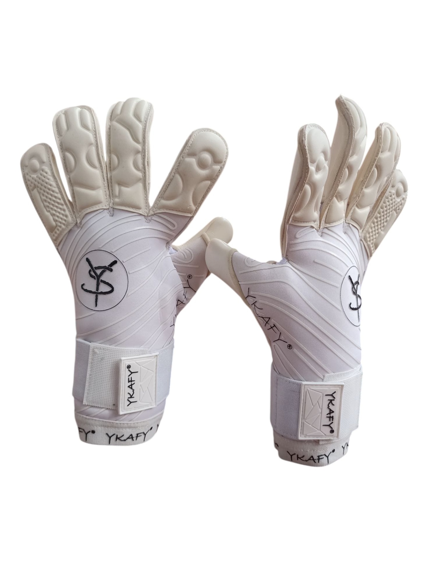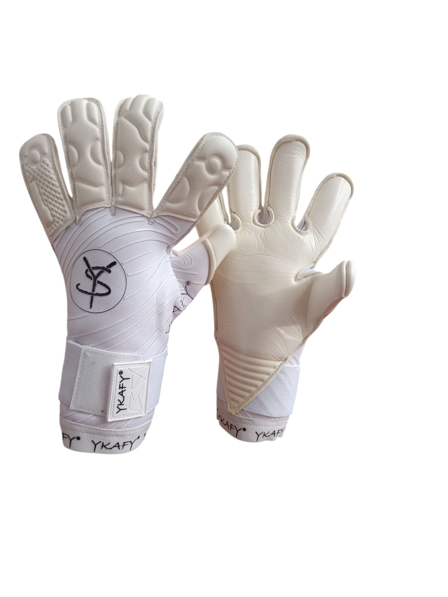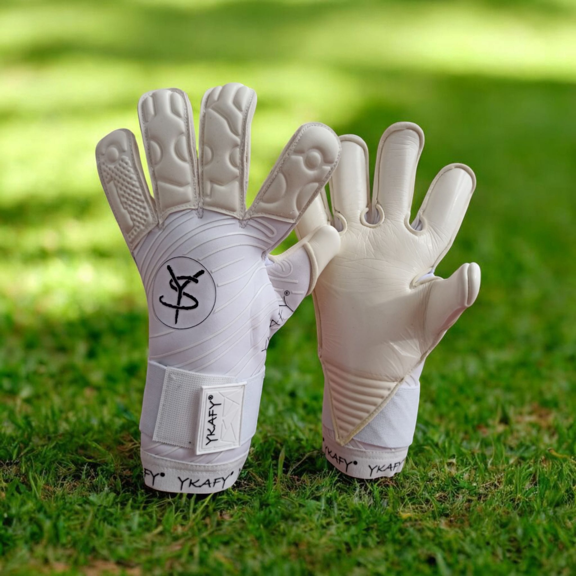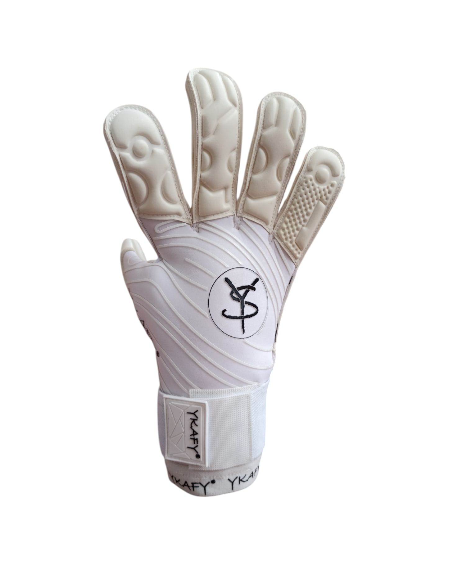 Luvas de guarda-redes brancas com proteção acolchoada e fecho ajustável YKAFY®.