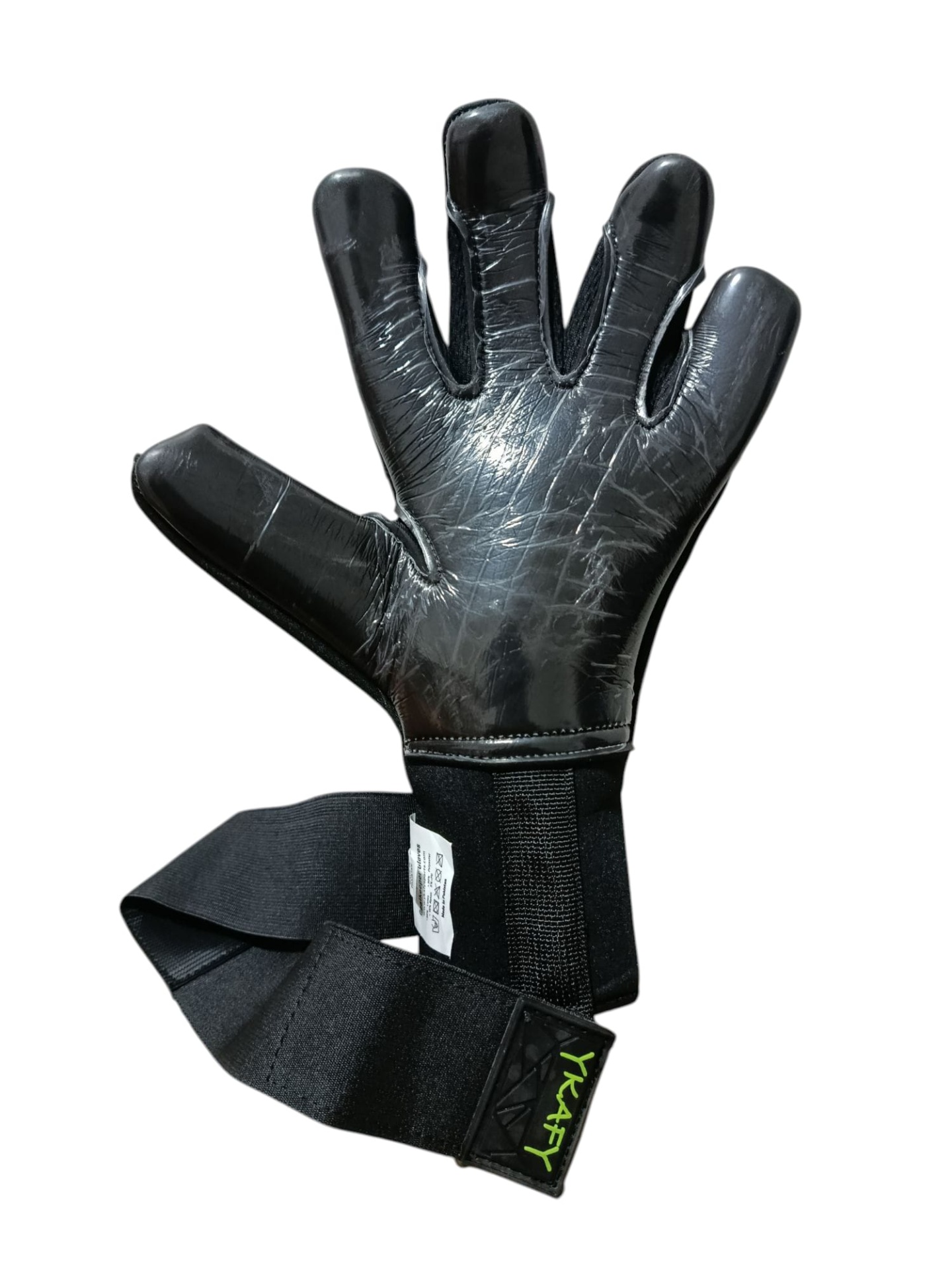 Luva preta com fecho em velcro preto e etiqueta verde YKRAFT